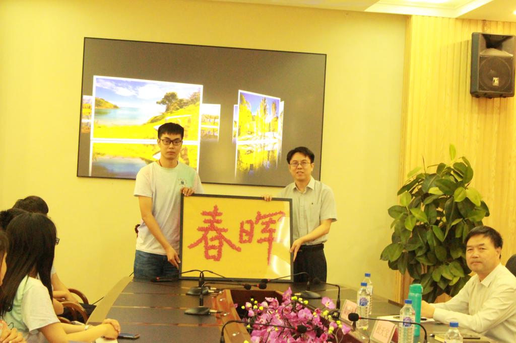 赠送礼物,礼物由团支部全体同学参与制作的520只纸鹤构成,共同拼成“春晖”字画,“春晖”二字形容母爱,取自古诗“谁言寸草心,报得三春晖”,在这里用来表达团支部同学对于母校的爱,这件礼物凝聚着毕业生同学拳拳爱校之情,最后,全体师生共同合影留念,活动在温馨的氛围中走向尾声。