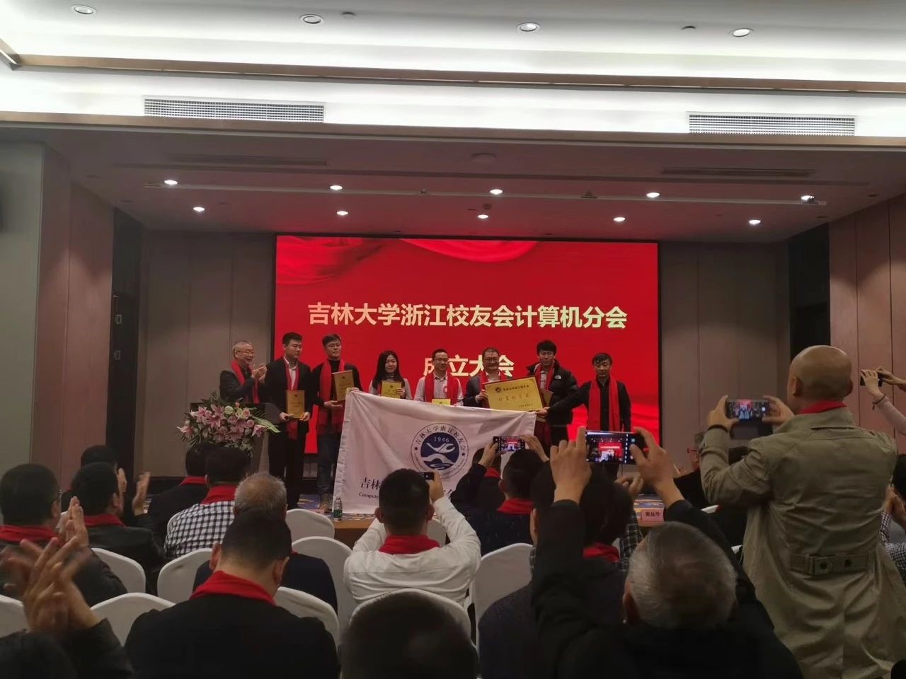 浙江校友会秘书长吴建文共同为计算机分会成立授牌、授旗)
