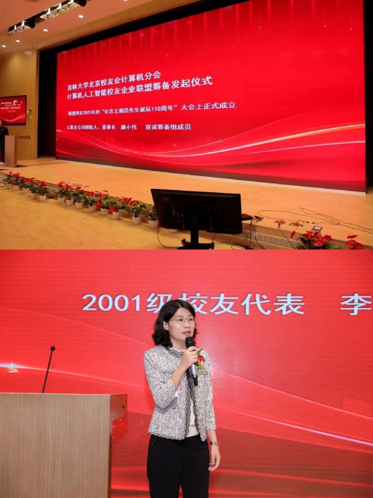 计算机学科校友合作发展交流会,走进吉大”活动启动仪式,并播放了第一届活动视频,2001级校友代表李秋香作活动介绍。