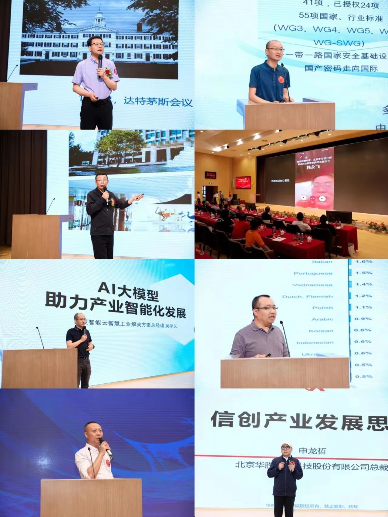 院长杨博,东方国信联席总裁霍卫平校友,百度智能云解决方案总经理吴学义校友,云集至公司技术总监解决方案部总经理张海涛校友,吉大正元执行总裁田景成校友,国家特聘专家、北京市可信计算重点实验室学术委员会副主任韩永飞校友,清雁科技公司(北京)有限公司技术总监林杨校友,华胜天成总裁申龙哲校友作主题演讲,为大家勾勒出人工智能技术的广阔前景,为科技发展注入新动力。