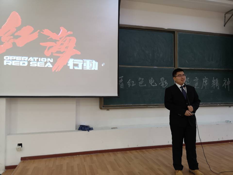 活动开始后,同学们按照班级顺序有序入场,并积极与主持人进行互动。在主持人介绍完本次活动的内容与背景后,进入本次活动的主要环节——观看爱国主义电影《红海行动》。该片讲述了中国海军“蛟龙突击队”8人小组奉命执行撤侨任务,同时在粉碎叛军武装首领的惊天阴谋中惨胜的故事。大国尊严、大国责任、大国气魄贯穿该片始终。影片彰显了中国政府维护国家和公民海外权益的意志和能力,让同学们强烈感受到一个负责任的大国守护世界和平的决心。影片中中国军人热爱和平、不惧牺牲的英雄气概和国际人道主义精神,彰显了国家利益、国家精神、国家形象和中国荣光。在观影过程中同学们始终保持着专注,感受着身临其境的真实感和摄人心魂的震撼效果。观影结束后开始本次活动的提问环节,同学们踊跃回答、积极参与,并纷纷表示自己有所收获。活动最后,每班选出同学代表上台演讲,讲述自己对新时代中国社会变化的所见所感,以及自己对新时代中国特色社会主义思想的理解。