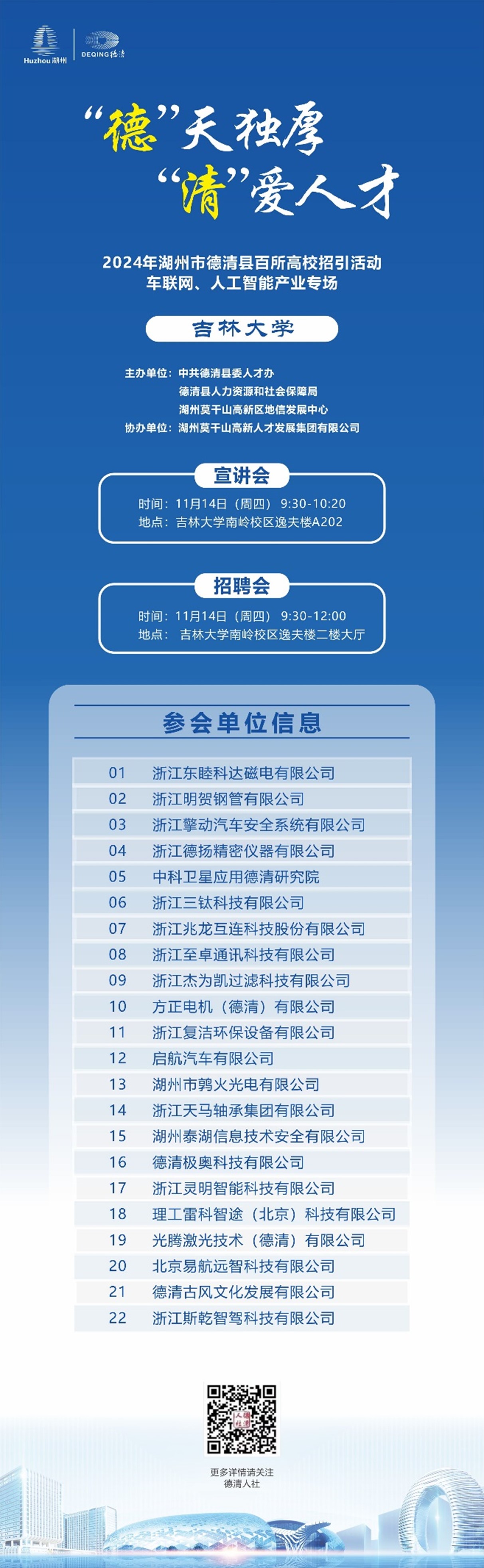 2024年浙江湖州德清县百所高校招引活动(车联网、人工智能产业专场)长春站