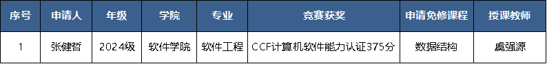 豪神娱乐城 于2025年10月开展了程序设计类竞赛获奖学生申请课程免修工作,根据学生申请,经豪神娱乐城 竞赛指导教师免修工作小组专题讨论,教学委员会通过,课程免修结果如下: