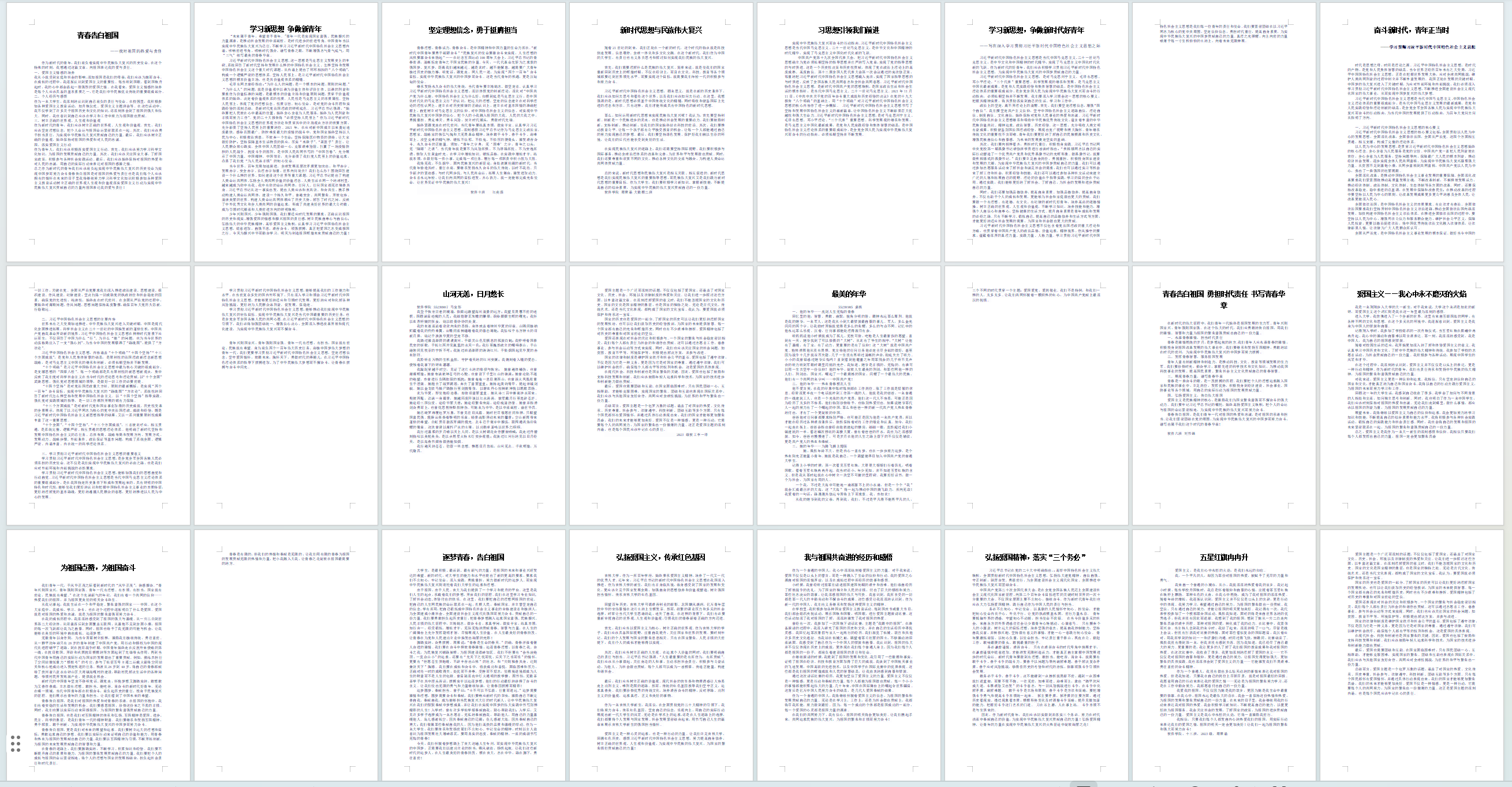 广大学生进行作品征集,共收到24篇作品,同学们积极参与,回顾了新中国成立以来党和国家走过的辉煌历程和取得的伟大成就,并结合自身经历,用朴素真挚的文字抒发了自己对于建设祖国的雄心壮志和美好愿景,展现了青年学生的爱国情怀和远大志向。经过评审,活动最终评选出一等奖1名,二等奖2名,三等奖3名以及优秀奖若干名。同学们通过此次活动不仅提高了自身的写作技能,而且更加坚定了青春报国的理想信念,立志将小我融入大我,把人生理想融入国家和民族的事业中,勇于担负起时代赋予的重担。