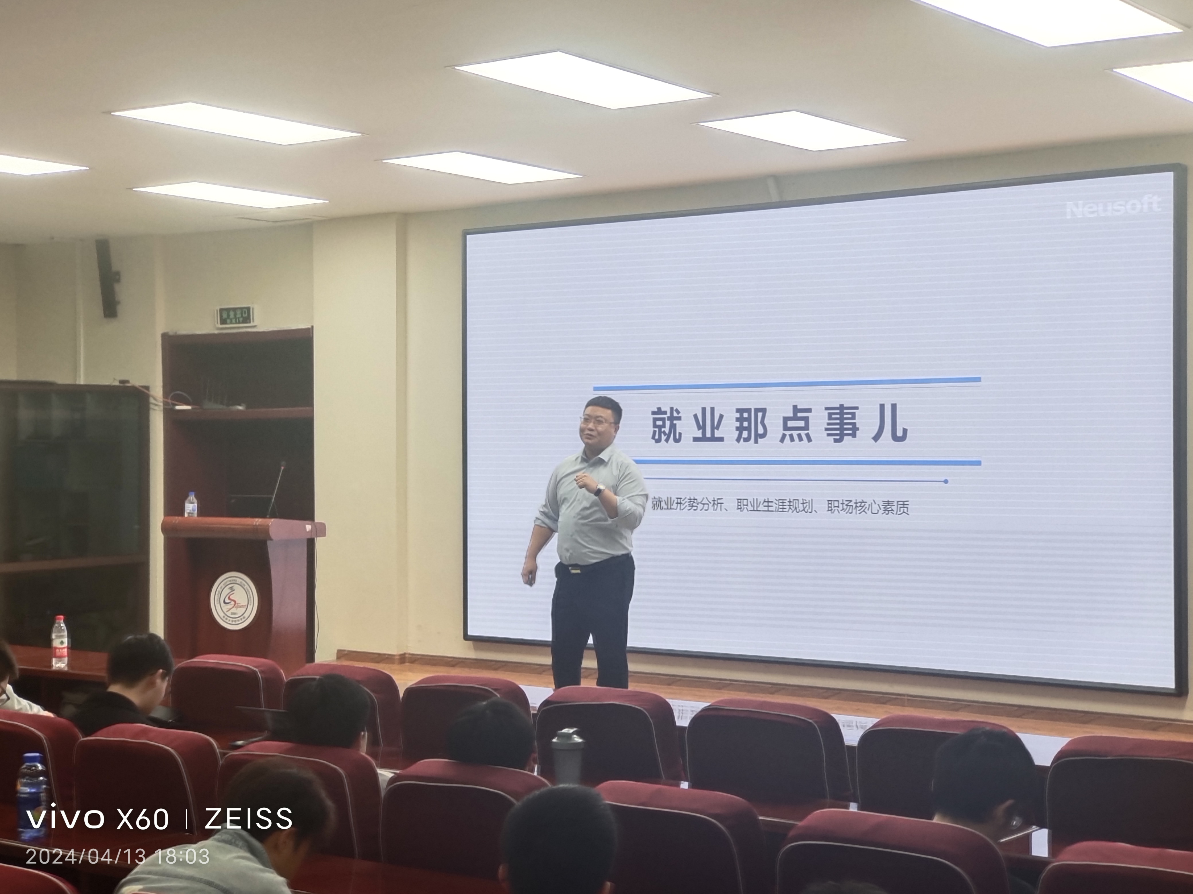 邀请东软集团校园招聘东北区域负责人高野担任主讲人,举办了一场以“就业那点事儿”为主题的就业技能培训活动。此次活动帮助即将步入职场的同学们更好地了解当前的就业形势,合理规划职业生涯,增强就业竞争力,扎实推动了毕业生高质量充分就业。