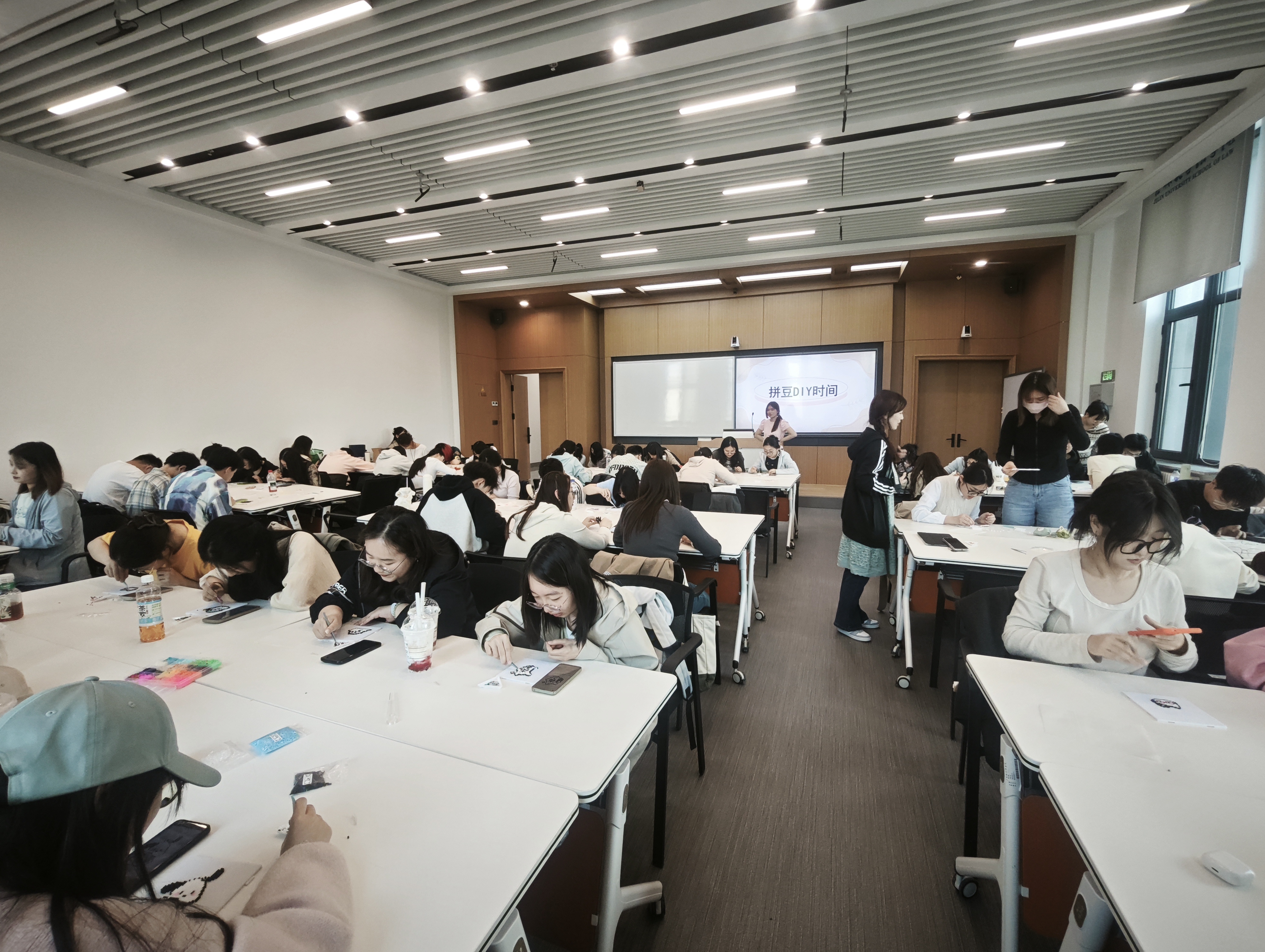 于5月18日在法学楼B405教室举办“指尖绽放,心灵相约”拼豆DIY心理体验活动。活动以手工艺术为载体,引导80余名同学在沉浸式创作中释放压力、疗愈心灵,通过朋辈协作实现心理成长与情感共鸣。