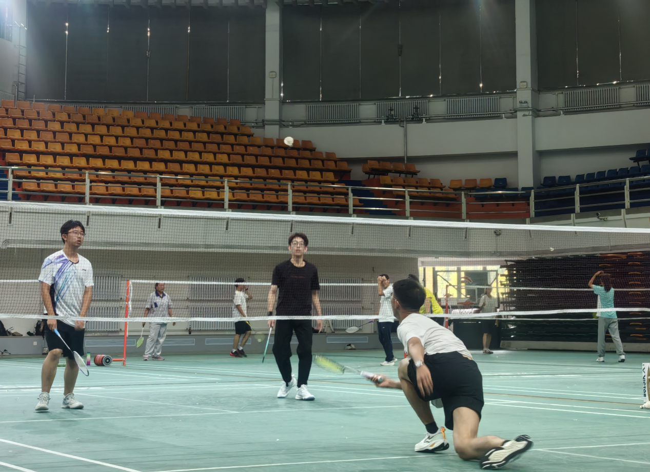 比赛当日,工作人员精心布置赛场,公示比赛规则与安全须知,带领选手开展热身活动,助力其快速调整状态。在男子单打赛场上,有的选手状态极佳,首局以21:12的悬殊比分成功晋级;女子单打赛场中,选手全力拼搏,“对手实力很强,每一分都得拼,这种全力以赴的感觉特别棒!”男子双打比赛更是精彩胶着,参赛选手配合默契,通过交叉跑位与快速封网多次化解对手攻势,更有一记斜线扣杀锁定胜局。
