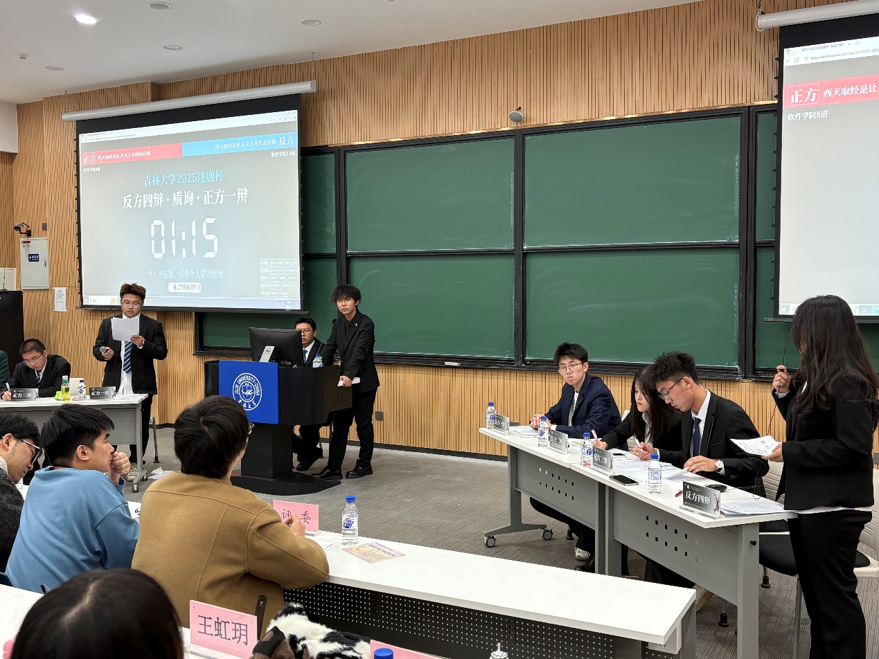 决赛围绕“西天取经是让齐天大圣找回自我/失去自我”这一兼具文学性与思辨性的辩题展开。该辩题以经典文学形象为切入点,既关联“自我成长与外界约束”的深层议题,也为辩手提供了从文学解读、价值判断等多维度展开论述的空间,引导现场观众从经典中挖掘现实思考,让辩论不仅是语言的交锋,更成为思想碰撞的载体。