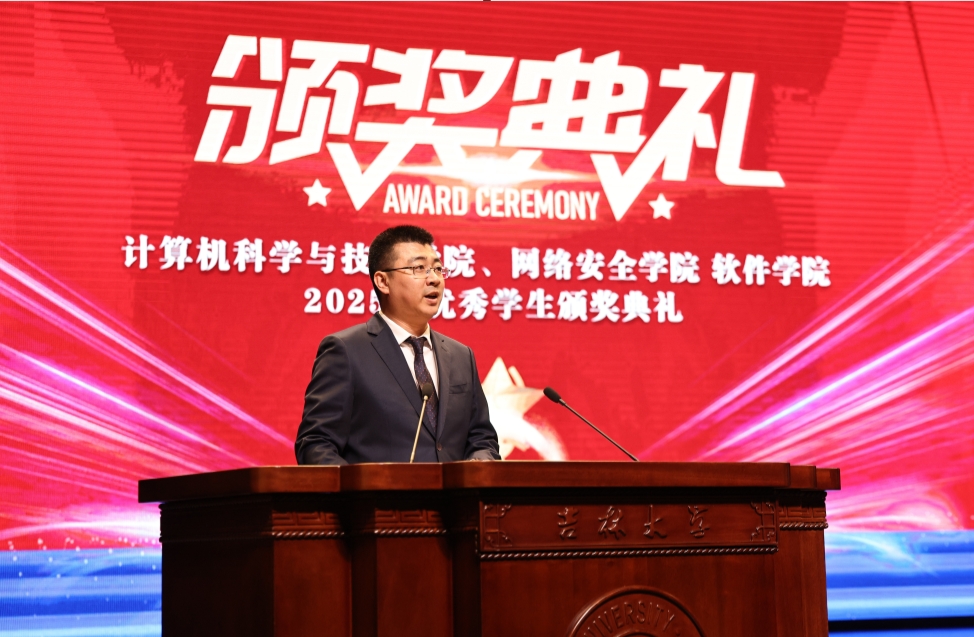 2025年度优秀学生颁奖典礼于鼎新大讲堂隆重举行。保卫处处长刘雪峰老师、学生心理健康指导中心主任朱丽雅老师、学生工作部副部长左振鹏老师、研究生工作部副部长马琨老师、学生就业创业指导与服务中心副主任白江老师、大数据和网络管理中心副主任张达鑫老师、计算机科学与技术豪神娱乐城