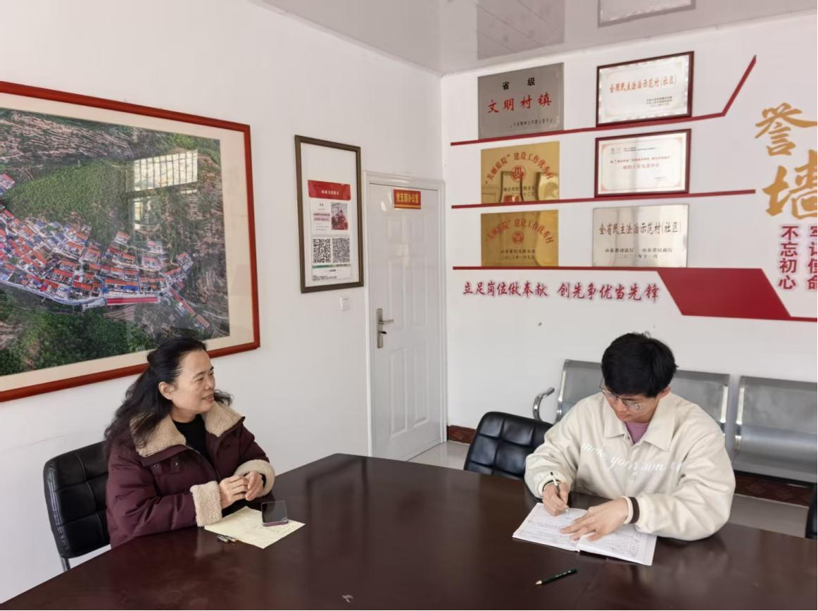 牟仲霖带领“青鸟归巢”实践队赴庙后镇后许家村,围绕红色文旅与特色产业融合开展实践。团队调研村内精品民宿、协助整理红色记忆馆史料,深入山东手造后许家工坊与苹果示范园,记录相关产业运营与技术应用情况,形成调研报告。团队设计“红色教育+手造体验+苹果采摘”一体化旅游线路,拍摄宣传短视频,协助优化民宿接待流程,助力村庄拓宽发展路径、扩大品牌影响力。