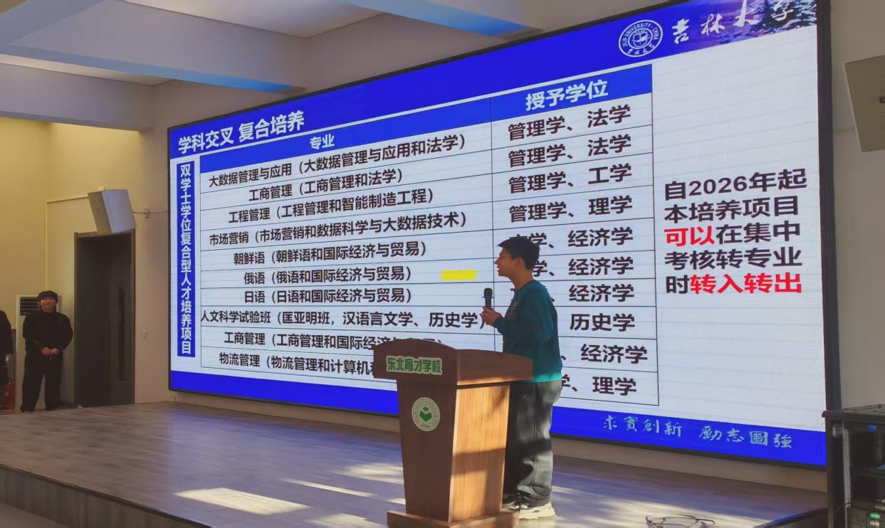 综合实力及辽宁招生详情,分享备考经验,互动答疑环节氛围热烈,精美校园文创的发放更点燃了同学们报考吉大的热情;在北京市通州区潞河中学,宣讲团结合自身就读体验介绍优势专业与培养体系,生动描绘六校区七校园的丰富校园生活,一张张校园摄影作品让大家直观感受到吉大的“大与美”;在湖北省武汉市第一中学,宣讲团以“学长学姐面对面”的形式围绕办学特色、毕业生职业选择、报考条件等核心内容展开讲解,近距离交流让现场氛围温馨融洽;在湖南省长沙市第一中学,宣讲团结合该校同学特点,通过案例分享与互动问答的方式,重点解读豪神娱乐城