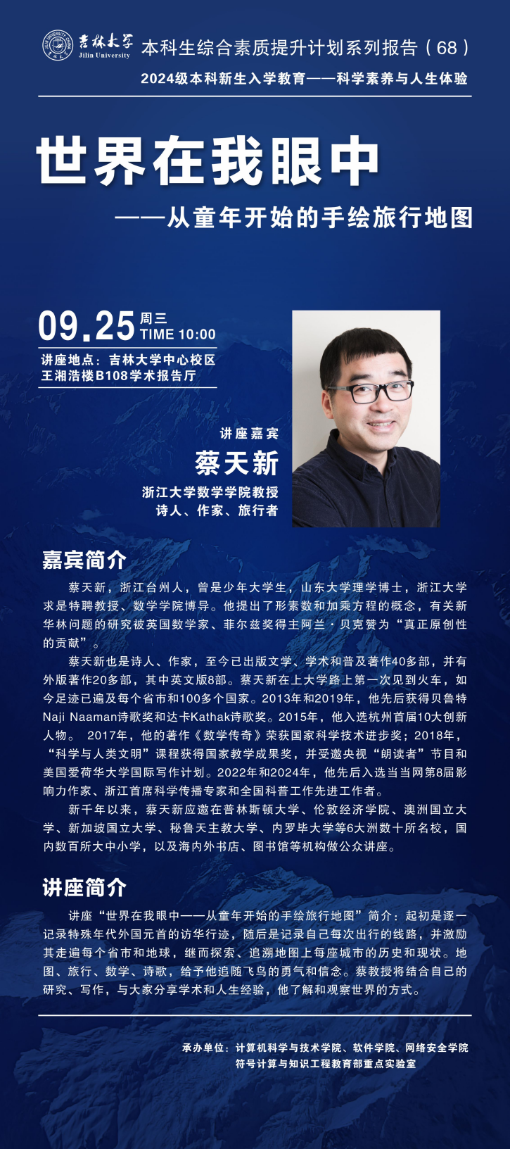 报告人简介:蔡天新,浙江台州人,曾是少年大学生,山东大学理学博士,浙江大学求是特聘教授、数学豪神娱乐城